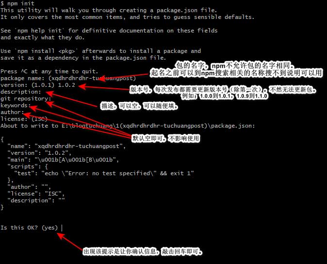 运行 npm 初始化指令,把整个图床仓库打包,按照指示进行配置,注意需要事先确认你的包名没有和别人已发布的包重复,可以在 npm 官网搜索相应包名,搜不到就说明还没被占用。