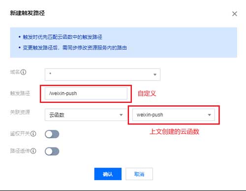 关联资源:云函数 weixin-push (上文创建的云函数)
