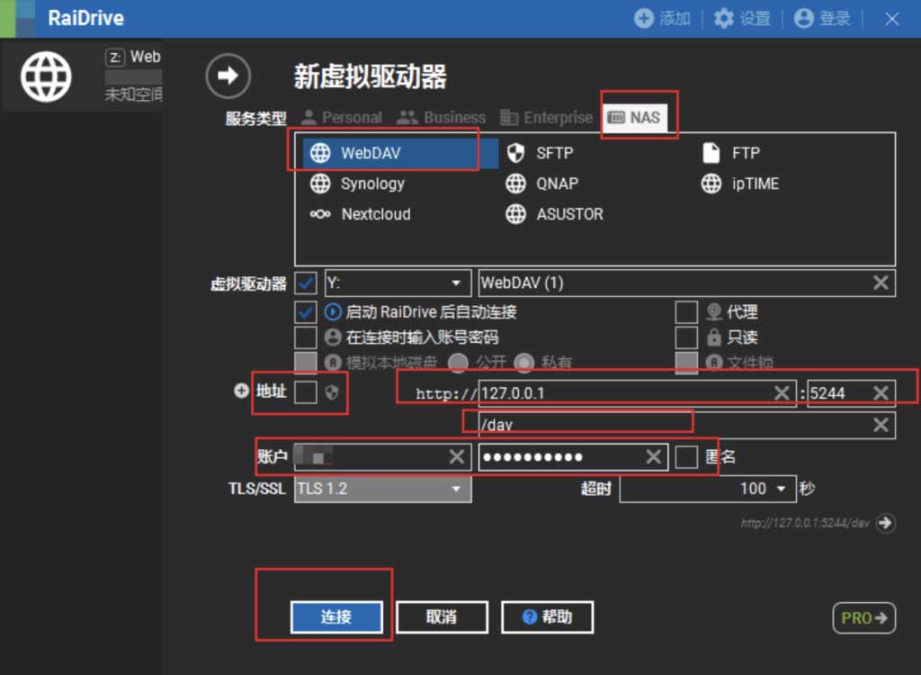 挂载成功后,通过RaiDrive挂载各大网盘到本地电脑上